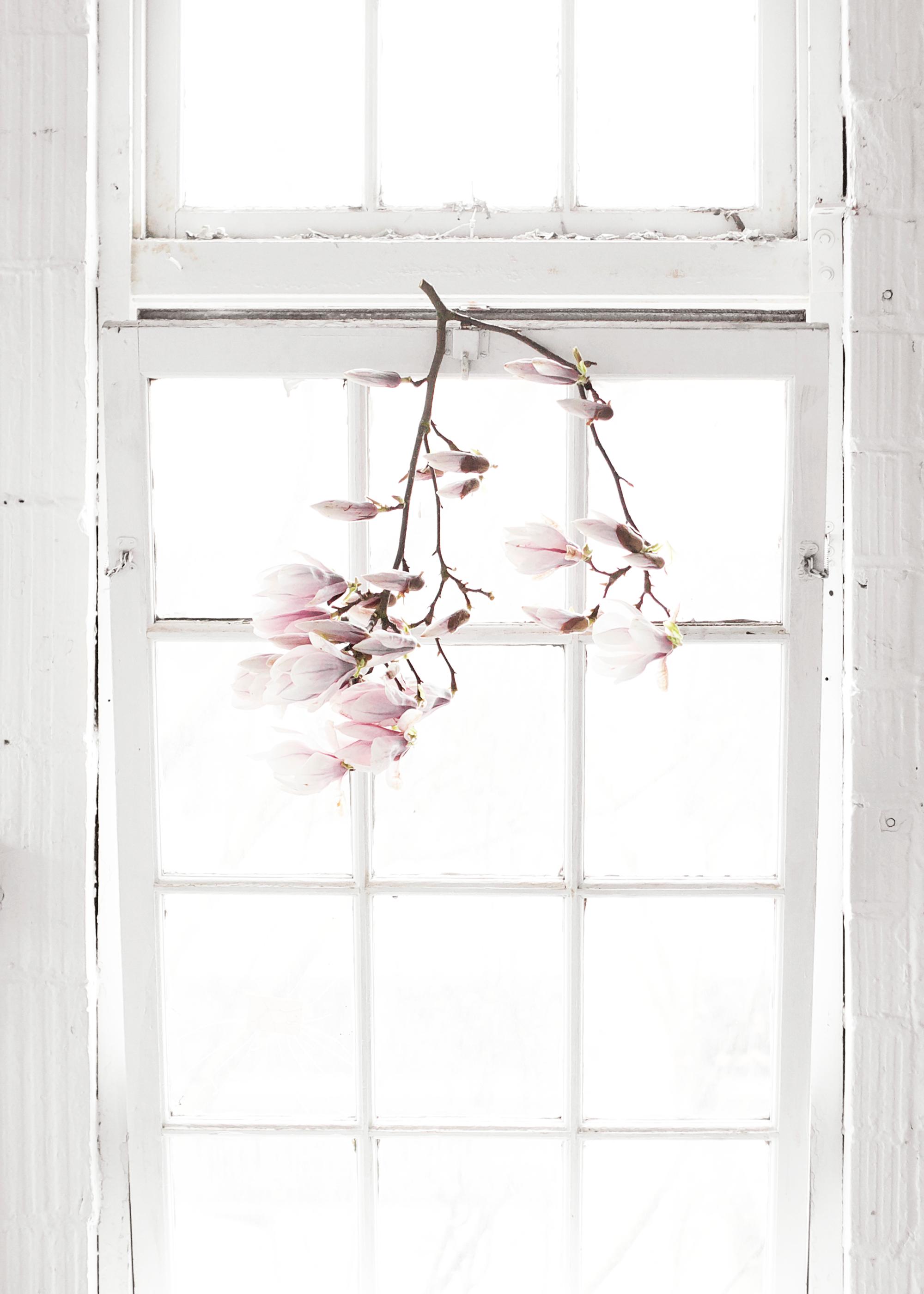Une douce lumière et des fleurs roses : un poster plein de fraîcheur pour votre décoration murale.