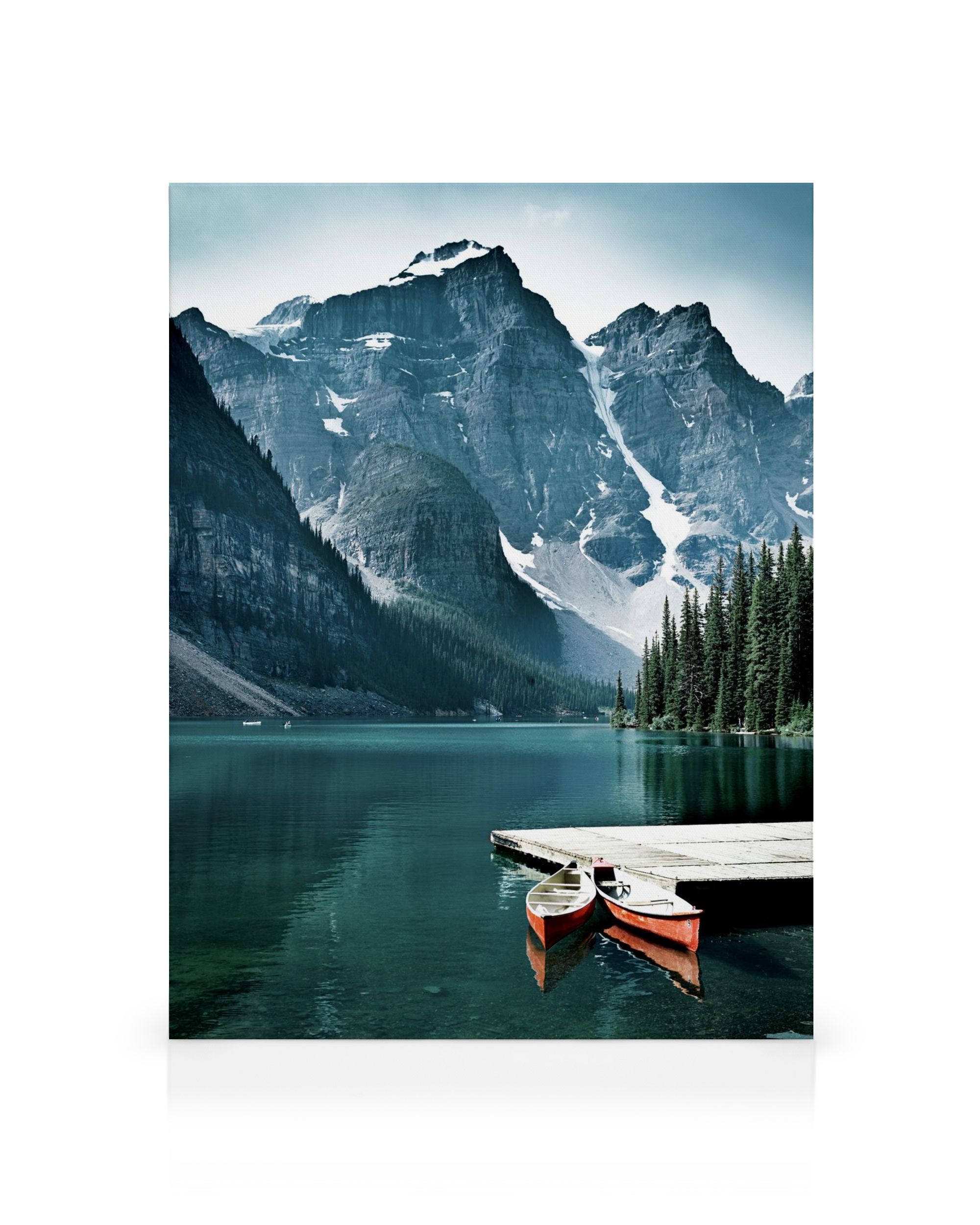 Vanaf € 12,95Een canvas met daarop twee rode kano's die drijven op een rustig meer, omringd door majestueuze besneeuwde bergen. De perfecte wanddecoratie om de kalmerende schoonheid van de natuur in je huis te brengen.